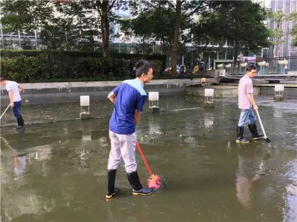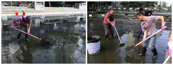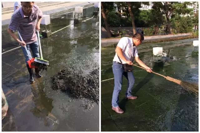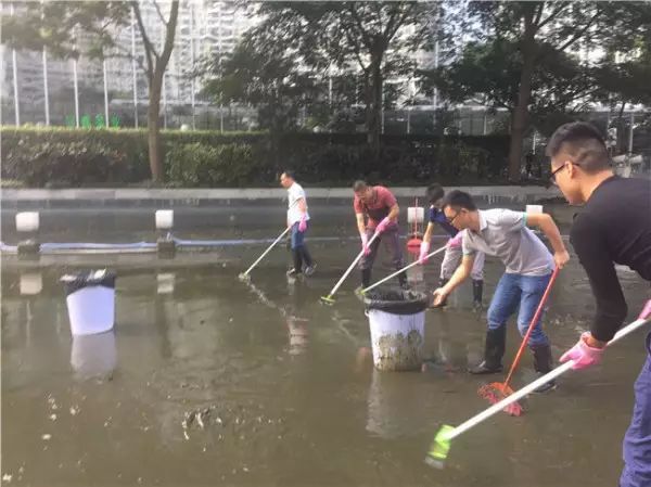 因本次水池整体清洁任务急、处理面积大、清洁人员短缺,2015年10月28、29两日,在公司领导带领下,办公室、人事部的紧急组织下,深圳合续20余名男员工参与了“景观水场地清洁工作”。